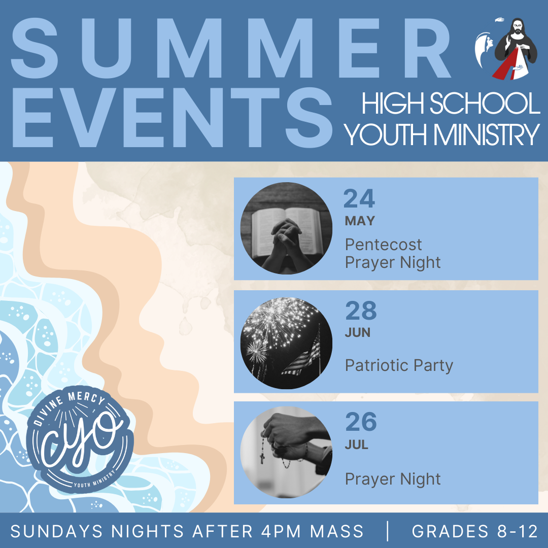 Wherever you are in your relationship with Jesus, this is a great chance to see what CYO is all about and learn about what Divine Mercy parish has to offer our teens.
