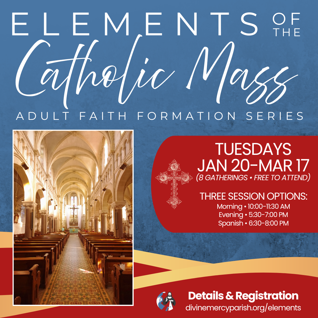 The Holy Sacrifice of the Mass is so full of intentionality and meaning but it can be hard to grasp on your own. That's where our Adult Faith Formation series comes in! This fall, you're invited to join us for Elements of the Catholic Mass, a series designed to help the YOU discover the beauty of the Mass. The program consists of a series of short videos with time for discussion. Come to one or come to all- we can't wait to grow with you! There is no cost to attend.