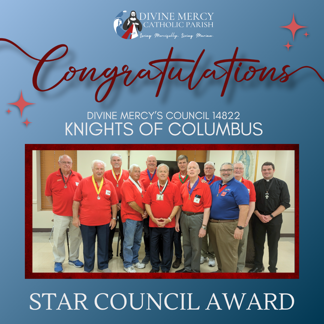 Divine Mercy Parish Knights of Columbus Council 14822 has received the distinction of Star Council, the international organization’s top award for local councils.